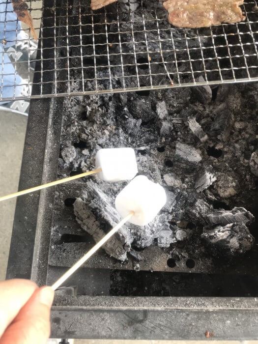 バーベキューのデザートはマシュマロ。