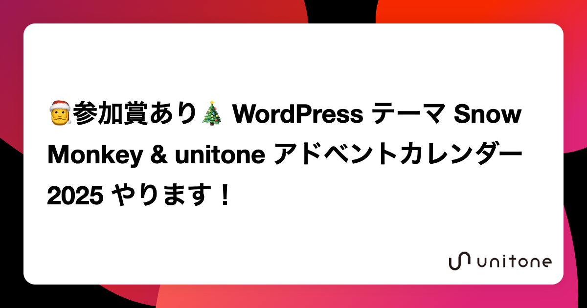 WordPress テーマ Snow Monkey / unitone のアドベントカレンダーです!